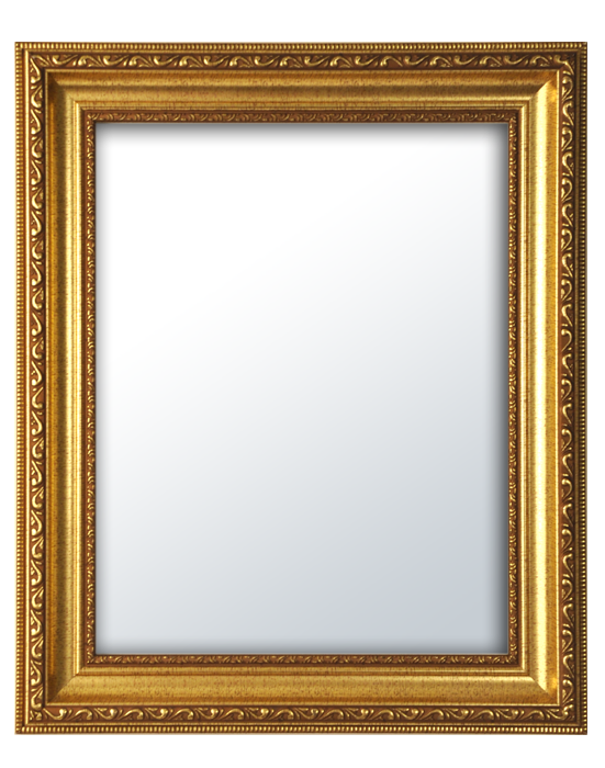 Antiqued gold finished cove framed mirror with carved, stylized foliate, & bead outer and inner lip