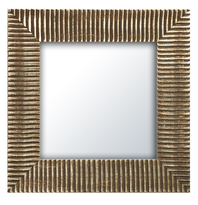 Bold modern textured carved simple bands framed mirror creating chevron patterns at mitered corners