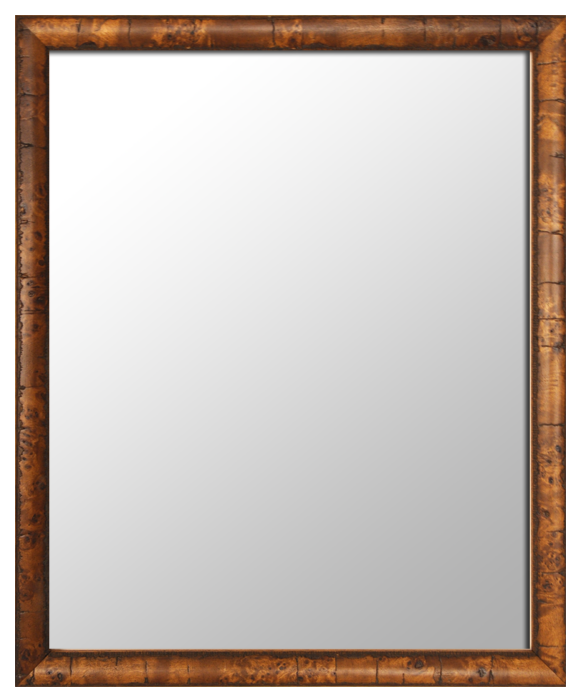 Burl wood framed mirror showing rich warm luxurious natural wood grain