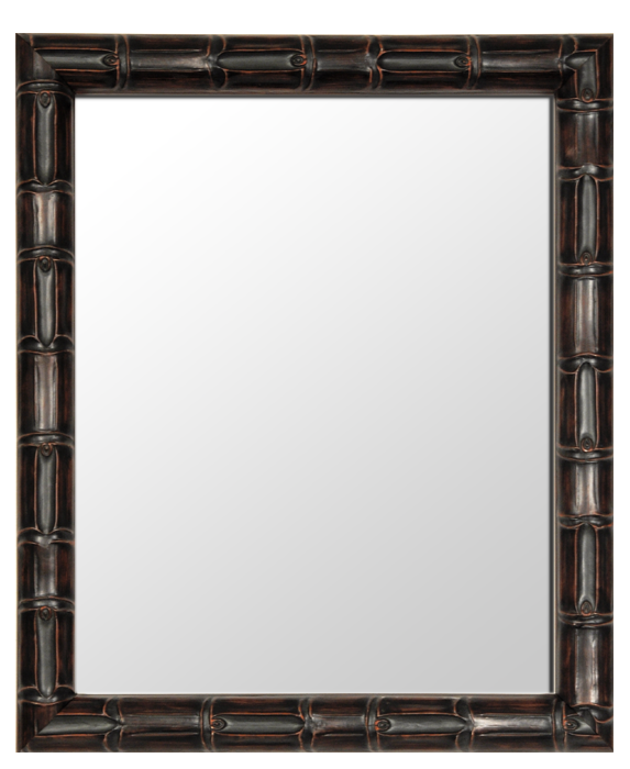 Ebony finished faux bamboo carved wooden framed mirror.