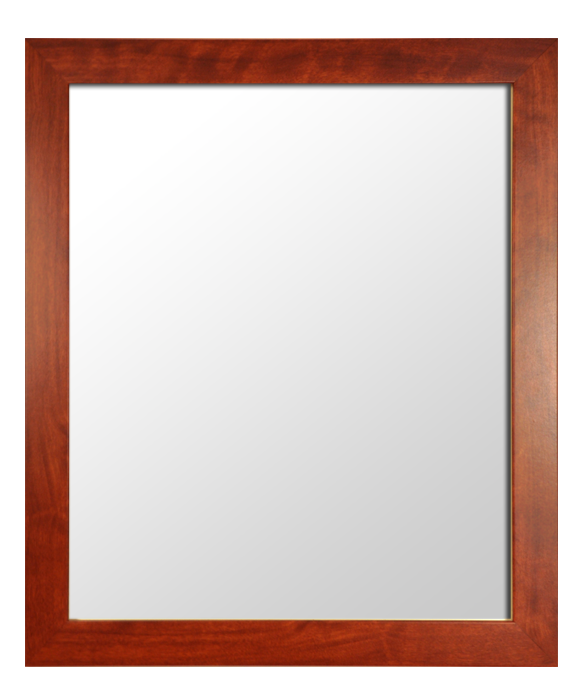 Modernist medium tone wood hue framed mirror.